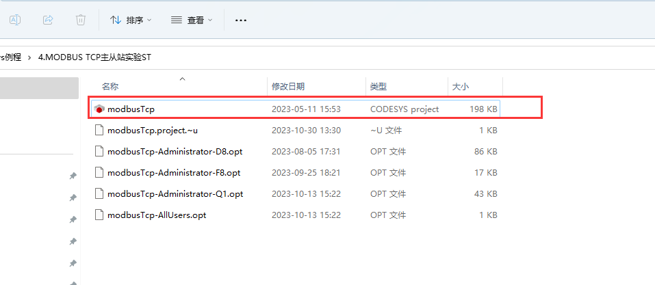1. 下载好MODBUS TCP主从站实验ST源码,解压并打开程序;