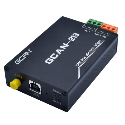 广成科技 GCAN-213 是一种 CAN 总线无线网桥,可用于在两个 CAN 系统之间通过无线传输信息。使用 GCAN-213 CAN 总线无线网桥,用户可以轻松完成两个 CAN-bus 网络的互连互通,进一步拓展 CAN-bus 网络的范围。广成科技 GCAN-213 由一对无线电收发器组成,工作在 2.4GHz ISM 频段。可提供最大允许发射功率,确保连接可靠,并最大限度地提高通信距离,全向天线支持任何方向的发射和接收。由于 2.4 GHz ISM 频段可用于许多不同的无线电技术,因此它受到各种规则的约束,这些规则旨在在使用相同频段的发射端和接收端密集分布的区域建立共存,可能会出现无线信号通信质量下降的情况。