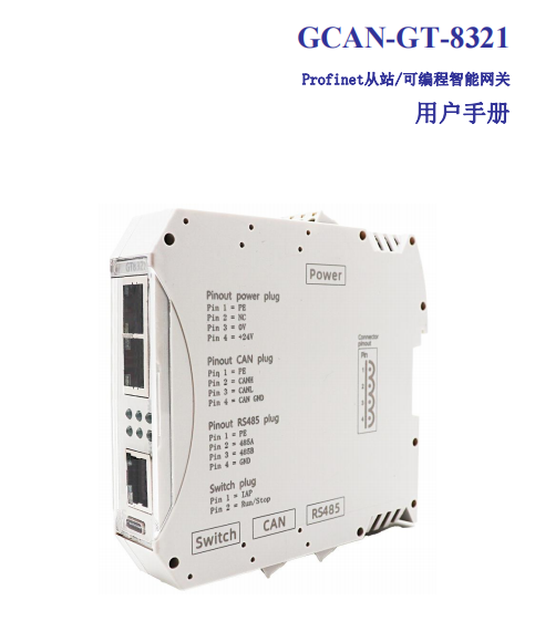 GCAN-GT-8321 网关是我公司推出的基于 Profinet 总线自主研发的高性能Profinet 从站/可编程智能网关。设备可作为西门子 200SMART、1200、1500、300等系列 PLC 的 Profinet 从站使用;设备集成了 2 路 Profinet 总线接口、1 路 CAN总线接口。