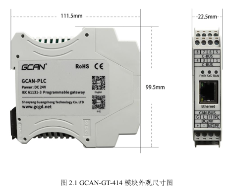 设备外形尺寸:(长,含接线端子)111.5mm*(宽)99.5mm*(高)22.5mm,其示意图如图 2.1 所示