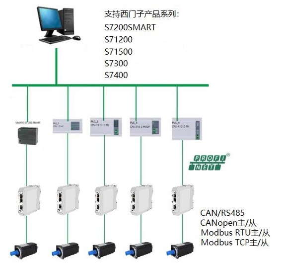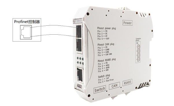GCAN-GT-8321 Profinet 网关使用 Ethernet CAT5 线缆(五类双绞线)与Profinet 主站以及其他从站设备相连接,GCAN-GT-8321Profinet 网关配备有2个RJ45 接口,可方便用户将GCAN-GT-8321Profinet网关连入Profinet总线。Profinet 通讯接口内部实现端口交换功能,无需另外增加交换机,可以轻松实现多个从站级联。