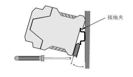GCAN-206 模块与安装模块的导轨相连。如果导轨固定到一个接地的金属组件板上,那么模块会自动接地,不需要从外部接地线。如果导轨固定到一个未接地的底座上,那么必须将导轨连接到最近的接地端子上。