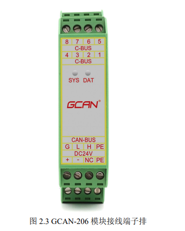 GCAN-206 模块集成 1 路 DC 24V 电源接口、2 路标准 CAN 总线接口。