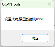 设置完成后,点击写设置,会出现如图所示的“设置成功,请重新插拔usb!”结果。
