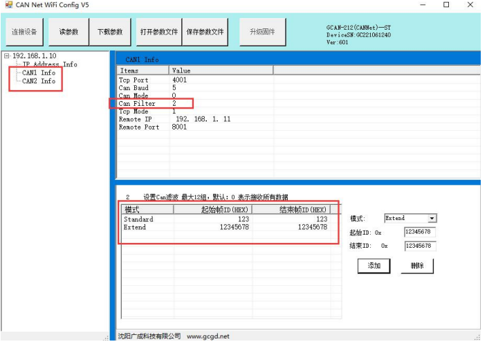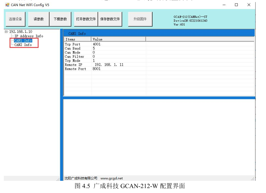 图 4.7 广成科技 GCAN-212-W 配置界面