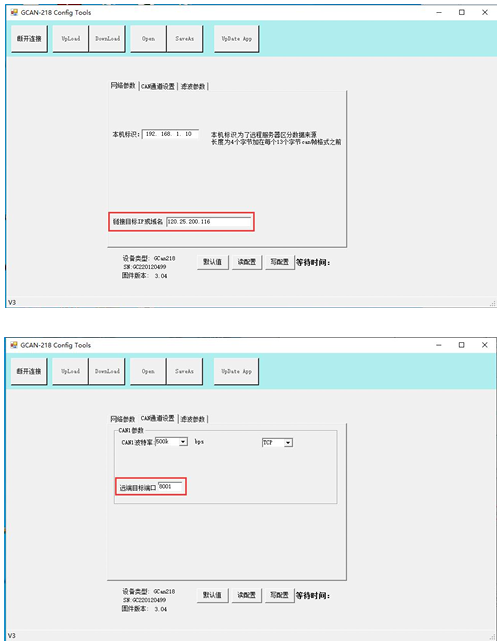 “CAN通道设置页”设置后,可测试TCP模式或UDP模式。