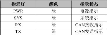 表3.2 USBCAN-I Pro+接口卡指示灯