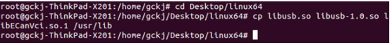 输入:cp libusb.so libusb-1.0.so libECanVci.so.1/usr/lib(默认路径为/usr/lib)