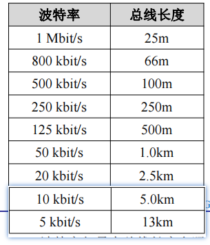 请注意:CAN-bus 电缆可以使用普通双绞线、屏蔽双绞线。理论最大通信距离主要取决于总线波特率,最大总线长度和波特率关系详见表 3.3。若通讯距离超过 1km,应保证线的截面积大于Φ1.0mm2,具体规格应根据距离而定,常规是随距离的加长而适当加大。