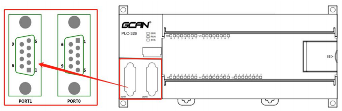 图 2.3 GCAN-PLC-326E/R 系列的 PORT0、PORT1 接口样式