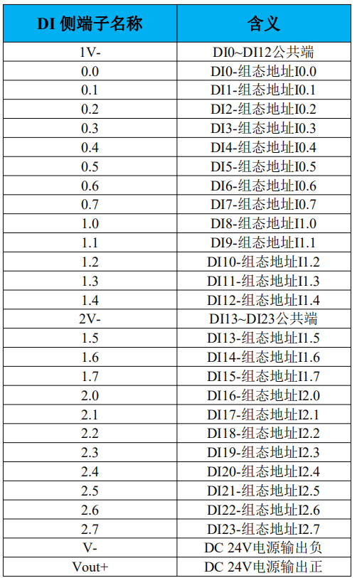 表 2.3 GCAN-PLC-326E/R 系列的 DI 侧端子排接口定义