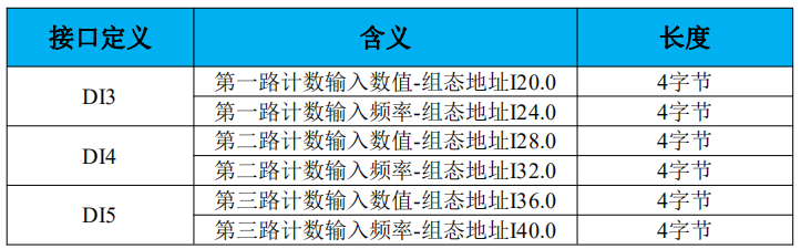 当 DI3~DI5 作为高速计数输入使用时,其组态地址如下表所示。