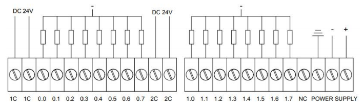 图 2.4 GCAN-PLC-326E/R 系列的 DI 接线图示样式