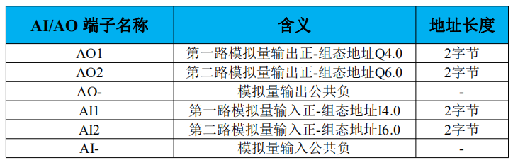 图 2.7 GCAN-PLC-326E/R 系列的 AI/AO 端子图示 AI/AO 端子名称 含义 地