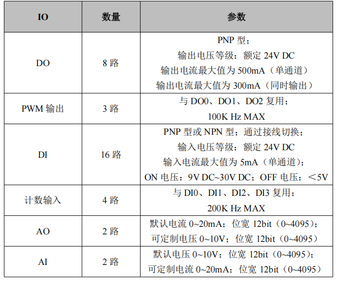 8路DO(3路PWM脉冲输出);16路DI(4路计数输入);