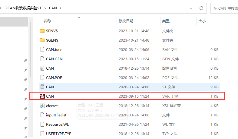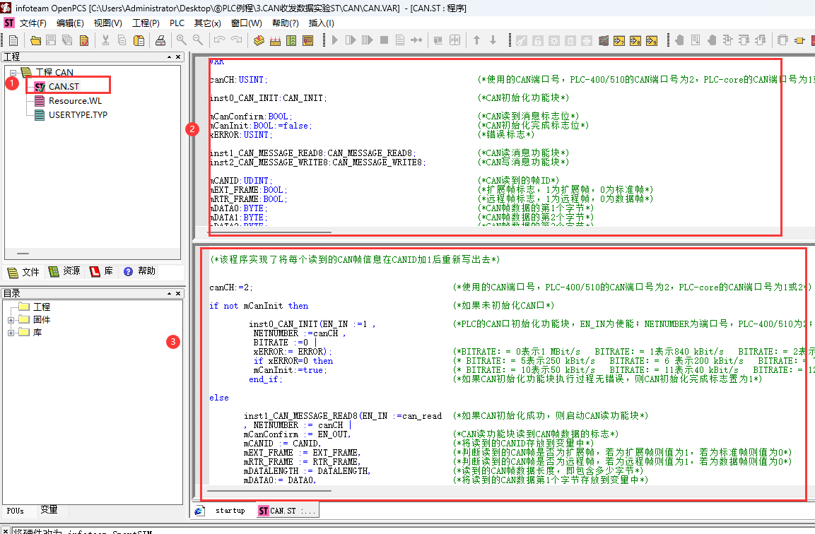 2. 点开CAN.ST,上半部分为程序声明,下半部分为具体程序。