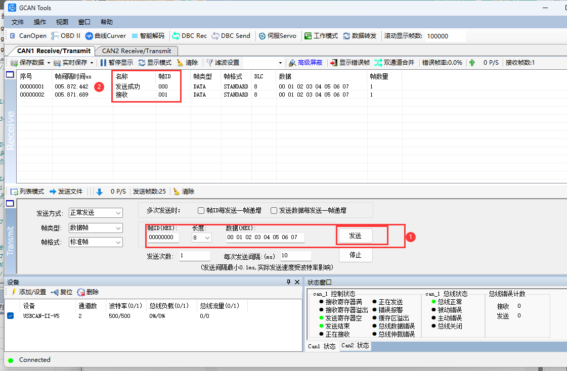 4.收到can帧数据,帧ID+1,数据不变发出去