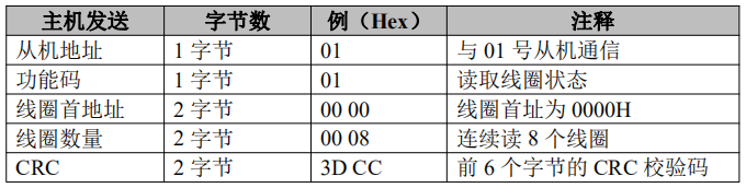 查询:查询信息规定了要读的起始线圈地址和线圈量,线圈的起始地址为 0000H,1-16 个线圈的寻址地址分为 0000H-0015H。