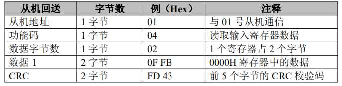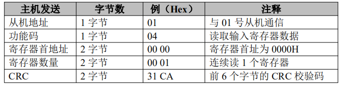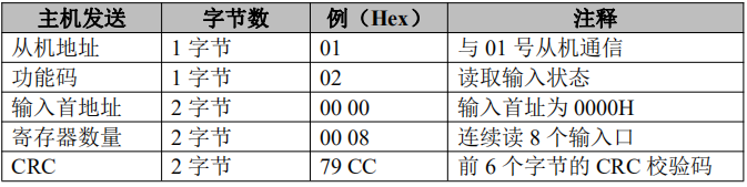 说明:读取从机输入寄存器(3X 类型)中的二进制数据,不支持广播。