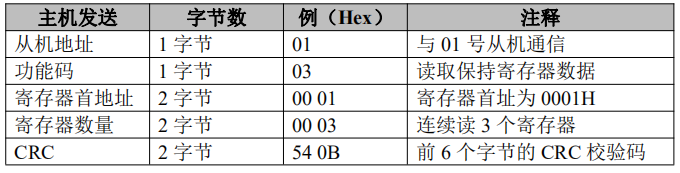说明:读从机保持寄存器的二进制数据,不支持广播。