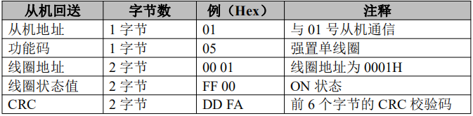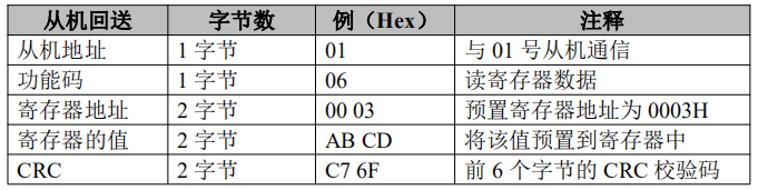 响应:对这个命令请求的正常响应是在寄存器值状态改变以后,原样传送接 收到的数据。