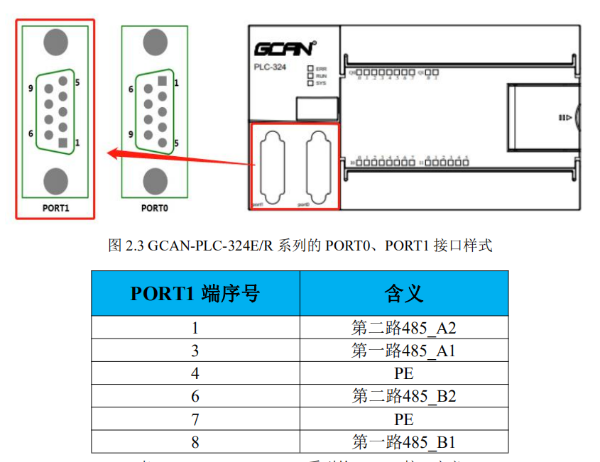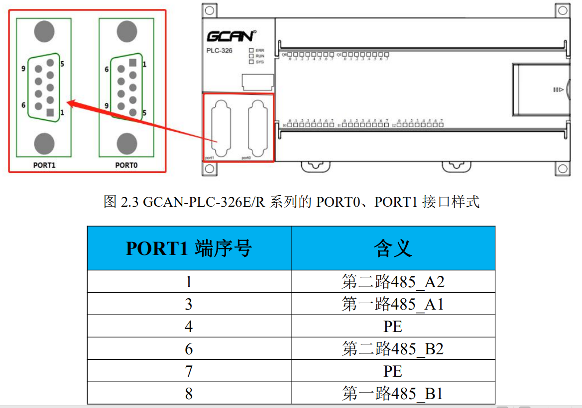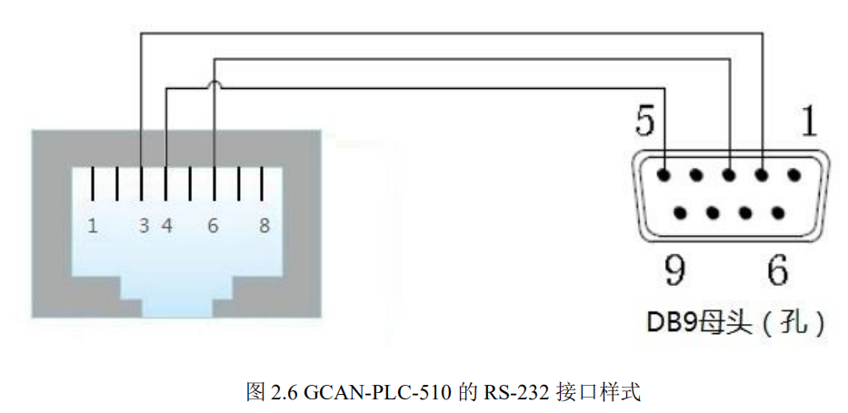 1.4 下图为GCA-PLC-326E/R的串口通讯接口示意图_使用DB9接口引出 【GCAN-PLC-326E/R用户使用手册_中文版】