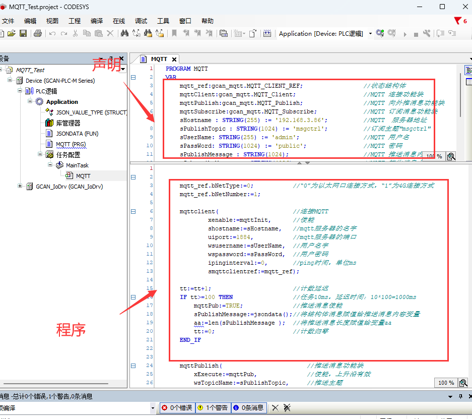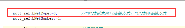 4.连接MQTT方式有两种,一种以太网,一种4G,通过“mqtt_ref.bNetType”参数决定,“0”为以太网口连接方式,“1”为4G连接方式。