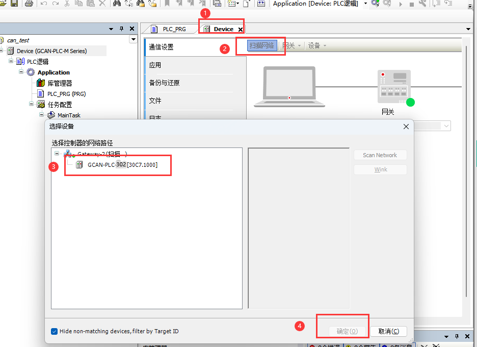 6. 点击Device→扫描网络→选择对应设备→确定