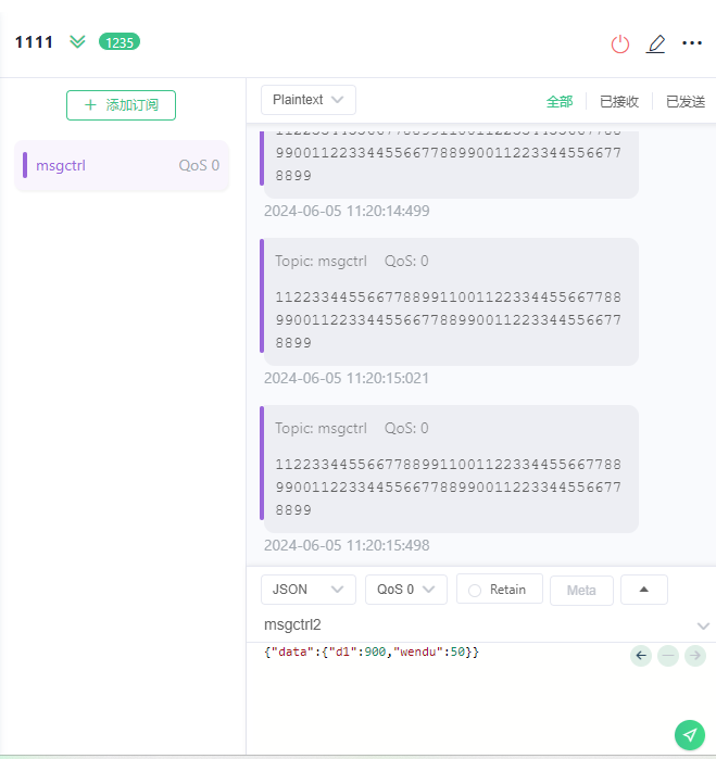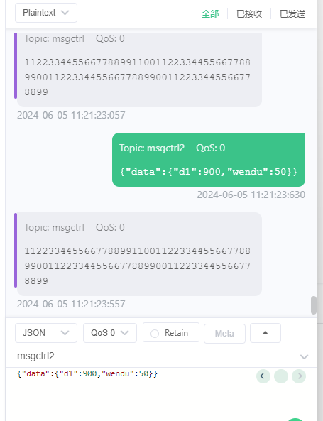 MQTTX软件向订阅号“msgctrl2”,发送数据,plc对应字符串可以收到数据