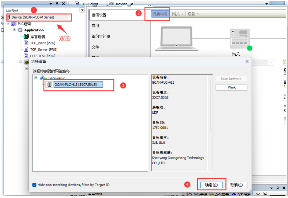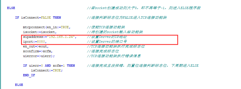 (1)设置好从要连接server的ip(注意这个ip要和设备ip在同一网段)和端口号