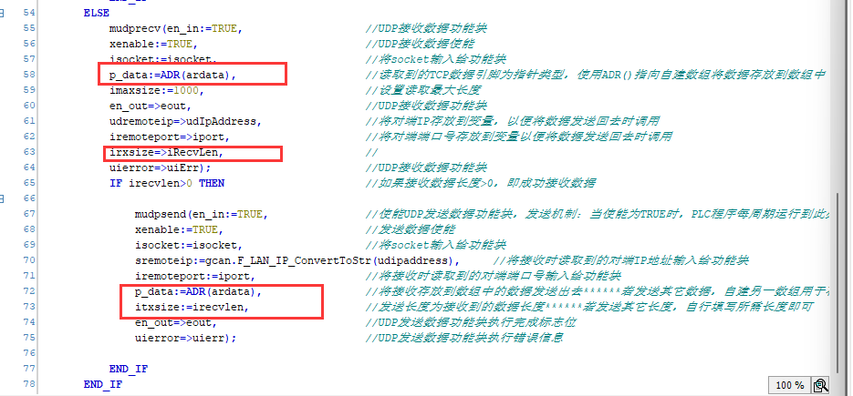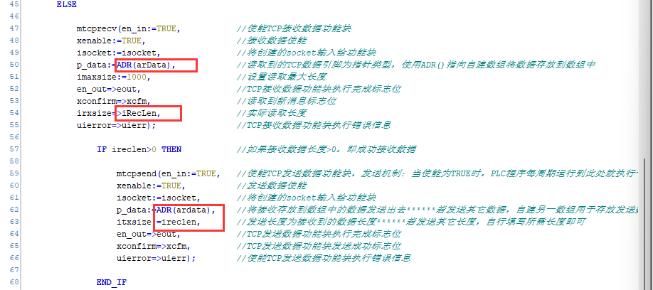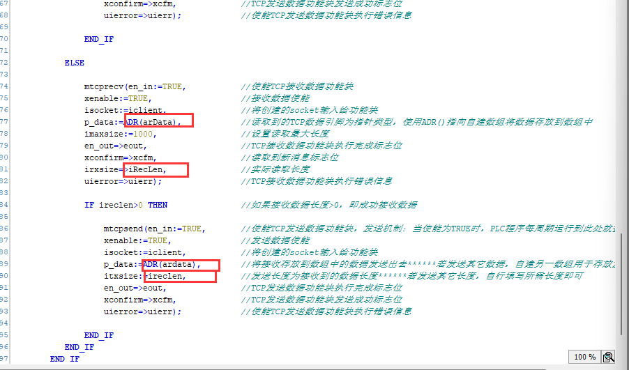 (2)接收到数据,然后发送出去;接收的数组和接收的长度,都给到发送的功能块,达到收发数据一致