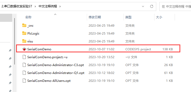1. 下载好串口数据收发实验ST源码,解压并打开程序;