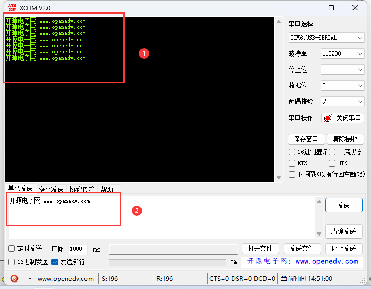 4.如果串口接收到数据,数据不变,通过串口发送出去。