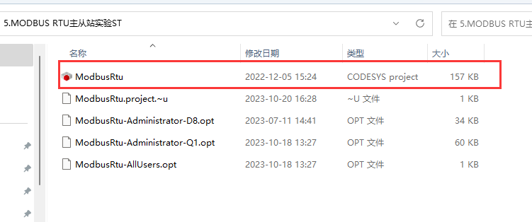 1. 下载好MODBUS RTU主从站实验ST源码,解压并打开程序;