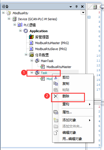 2.删除从站任务:Task右键→删除