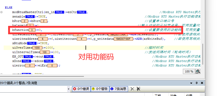 代码功能:读取保持寄存器