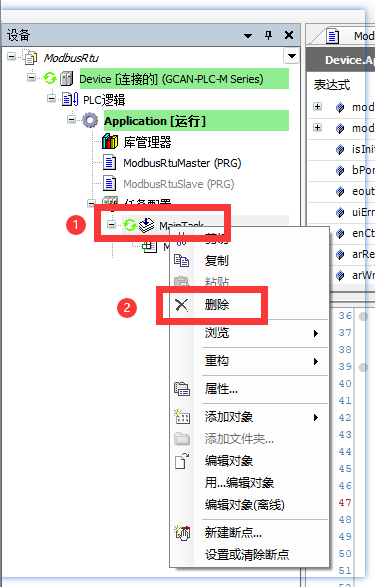 2.删除主站任务:MainTask右键→删除