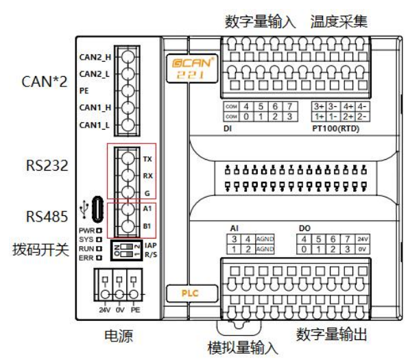 图 2.4 PLC-221 各接口位置