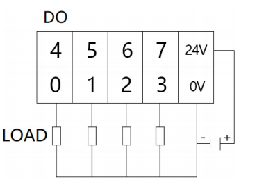 DO 端子排晶体管 PNP 输出接线如图所示: