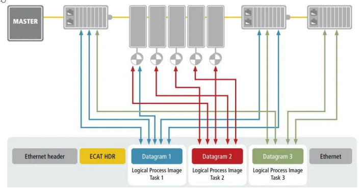 图 3.2 GCAN-5032 EtherCAT 远程 IO 模块接入总线数据流