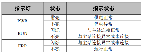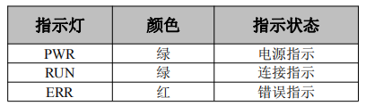 RUN 指示灯、1 个 ERR 灯来指示设备的运行状态。