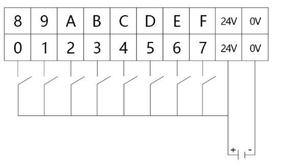 1) 漏型输入接线如图所示: