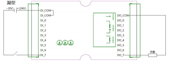 GCAN-4057 模块漏型输入、PNP 输出接线图