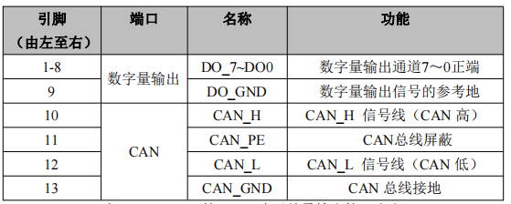 表 2.3 CAN-bus 接口、8 路开关量输出接口定义