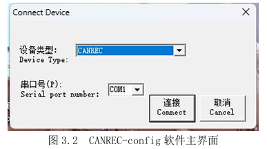 当GCAN-402D模块通过串口与PC机正常连接后,打开“CANREC-config”软件对模块进行配置。软件界面如图3.2所示。